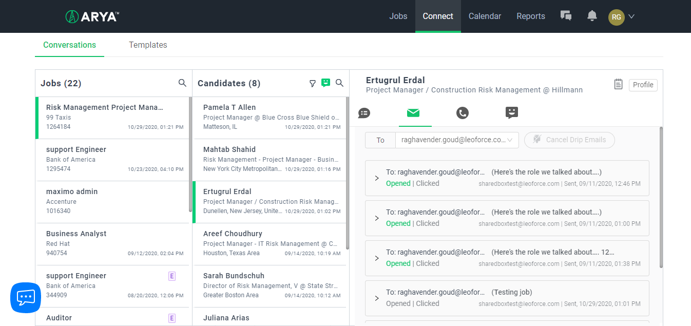 Leoforce Quantum by Leoforce, for larger businesses and recruitment process outsourcing (RPO) agencies, offers a Connect communications dashboard that empowers our clients to create meaningful conversations with their candidates, personalizing their communications to their specific style and personality, and engaging with candidates precisely the way they want. It works with your email, text, and calendar for one-to-one and one-to-many communications and scheduling interviews.