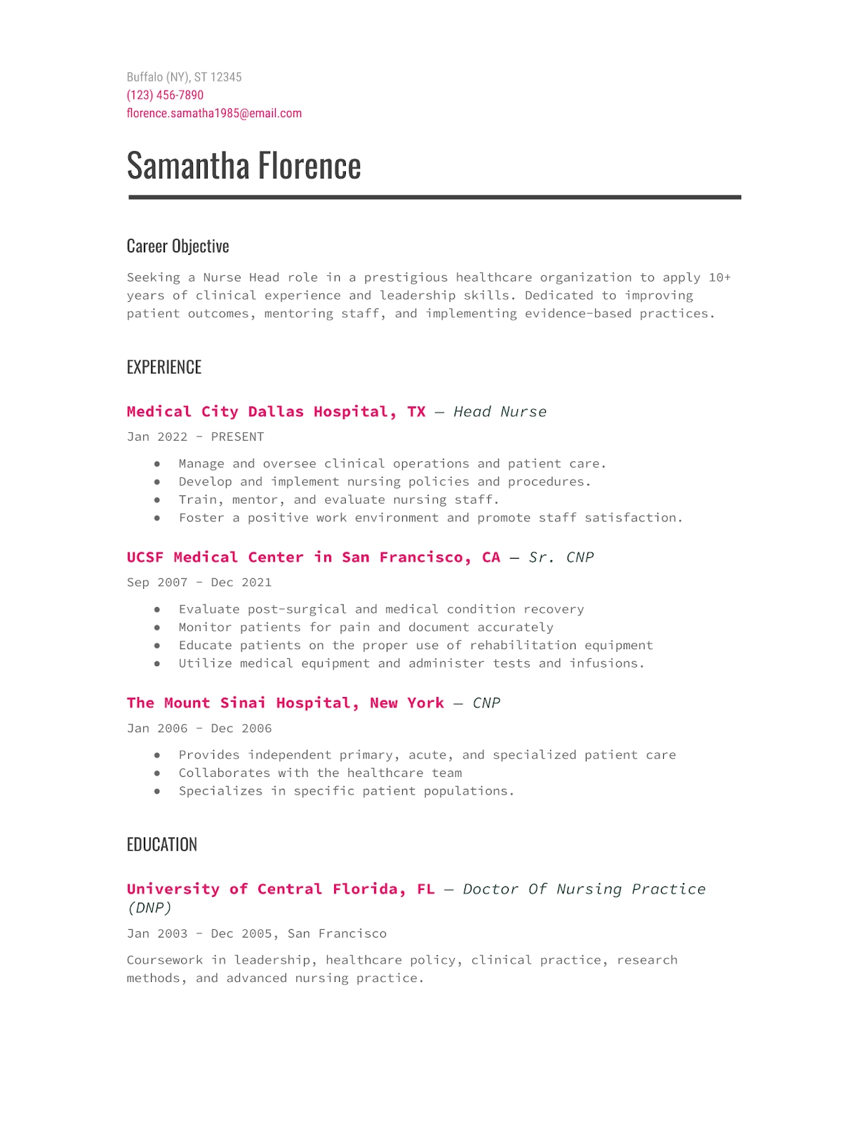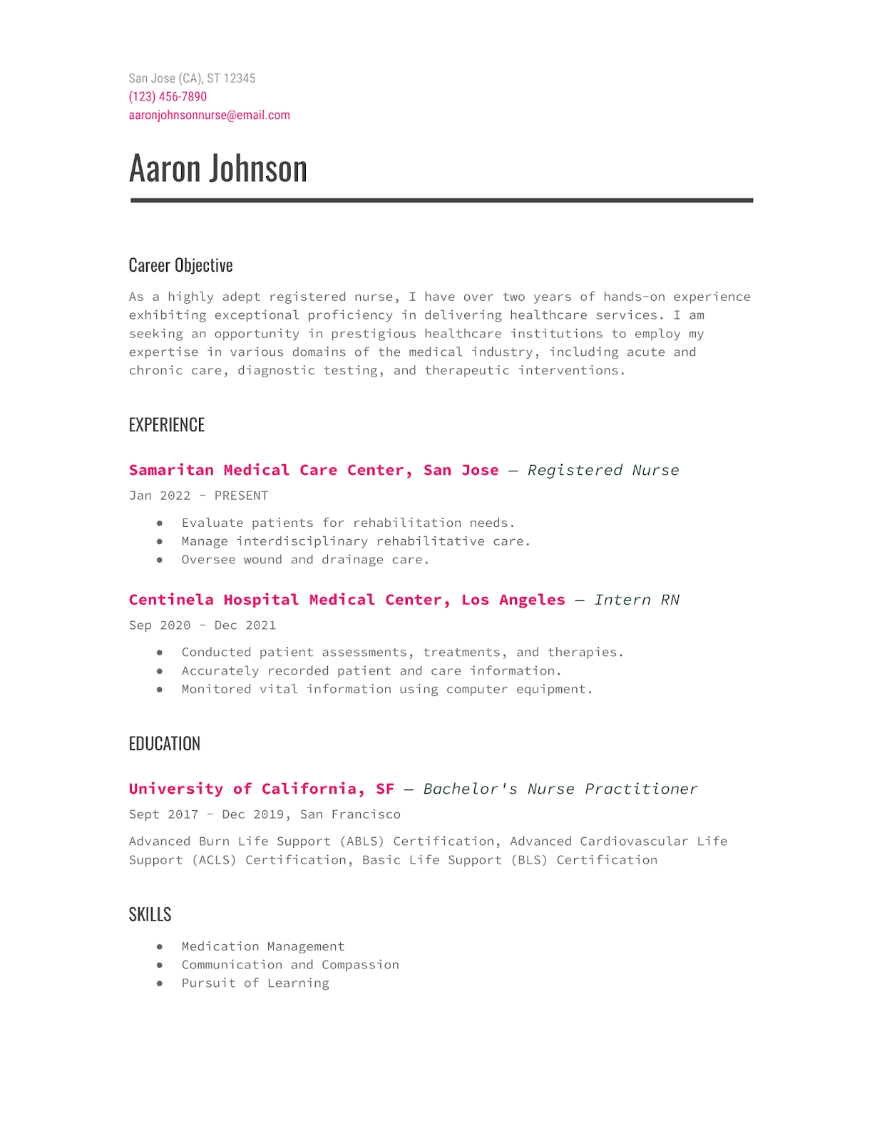 These days, most healthcare recruiters use ATS to parse resumes. As these tools tend to make mistakes in abbreviations, fonts, and symbols, you should write your registered nurse resume with high clarity.