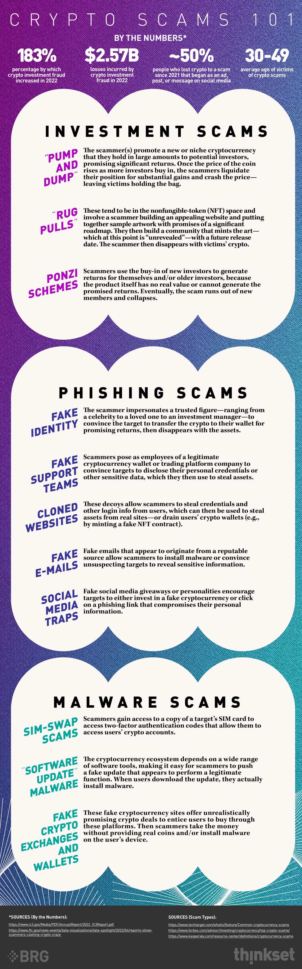 The past few years have seen an explosion in crypto-related scams: in 2022 alone, crypto investment fraud increased 183%, with losses totaling over $2.5 billion.